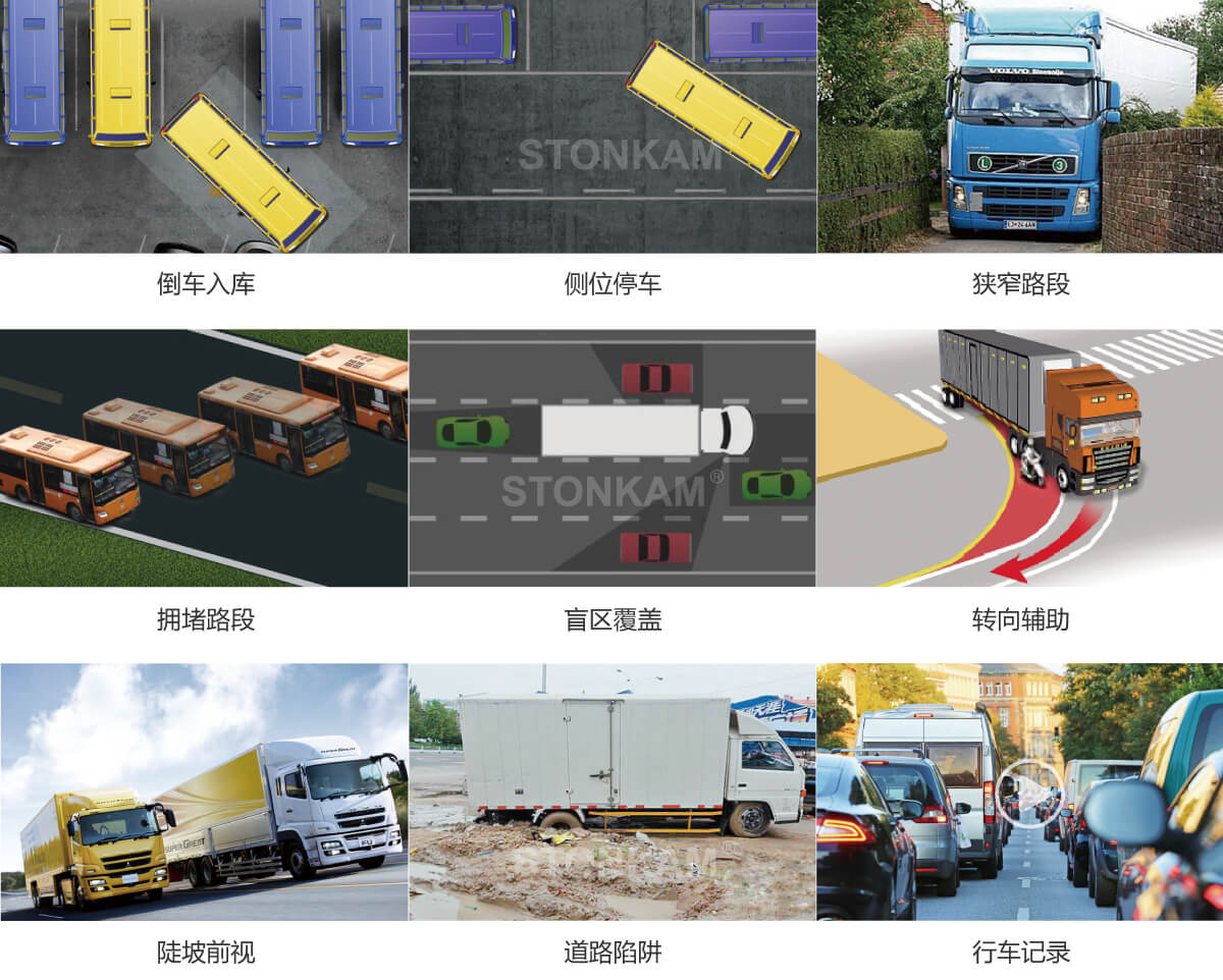敏視360°全景駕駛輔助系統(tǒng)&全景影像系統(tǒng)能夠?qū)崿F(xiàn)真正的360°全景鳥瞰,做到360°無死角監(jiān)控,行車更安全。它支持全景影像合成技術(shù),塑造3D行車場景。專為卡車,公交車,應(yīng)急車輛等設(shè)計,易于安裝和標(biāo)定。若與雷達(dá)探測系統(tǒng)結(jié)合使用將會大大有效提高行車安全性。