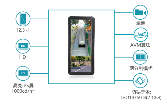12.3寸360環(huán)視監(jiān)控電子后視鏡系統(tǒng)