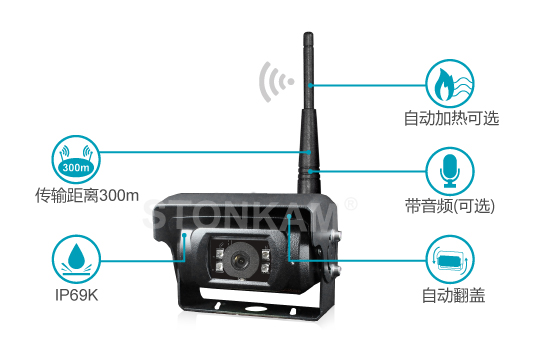 敏視2.4GHz 1080P車載數(shù)字無線自動翻蓋攝像頭適用于沙塵暴或雨雪天氣等惡劣環(huán)境。 它的防水防塵等級IP69K并可以通過電池供電。與7英寸高清無線監(jiān)視器配套使用將獲得更好的效果!