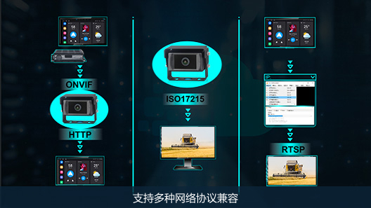 敏視車載無(wú)線監(jiān)控設(shè)備通過(guò)在農(nóng)機(jī)關(guān)鍵部位布置高清攝像頭,實(shí)現(xiàn)全方位盲區(qū)覆蓋與作業(yè)環(huán)節(jié)實(shí)時(shí)監(jiān)控,讓操作員在駕駛室內(nèi)輕松掌控農(nóng)田作業(yè)全局,顯著提升效率并降低碰撞風(fēng)險(xiǎn)。敏視IPC監(jiān)控系統(tǒng)兼容ONVIF、RTSP、ISO17215等多種網(wǎng)絡(luò)協(xié)議,能夠輕松與車內(nèi)其他設(shè)備互聯(lián)集成,構(gòu)建更完善、更高效的智能監(jiān)控體系。