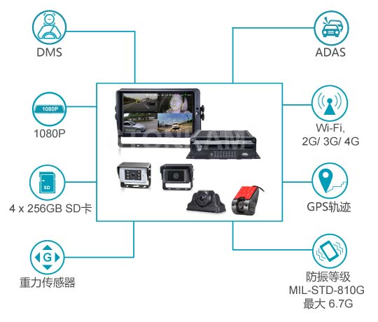 敏視四路AI智能高清錄像系統(tǒng)采用H.264/H.265壓縮技術,支持實時遠程監(jiān)控, 可實現(xiàn)更智能、更全面的車輛管理!同時,該智能MDVR采用多核處理器和性能強大的神經(jīng)網(wǎng)絡推理引擎,集成ADAS、DMS、BSD等算法,一臺MDVR可搭配出多種功能強大的一體機系統(tǒng),實現(xiàn)車載錄像機集合ADAS和DMS或是盲區(qū)檢測系統(tǒng),無需額外安裝即可進一步保障安全駕駛,大大地節(jié)省了成本和安裝時間!