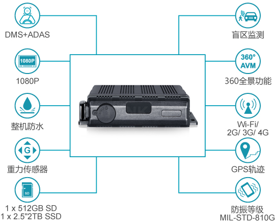 敏視八通道智能高清防水車載硬盤錄像機(jī)一體機(jī)系統(tǒng)采用H.264/H.265壓縮技術(shù),支持實(shí)時(shí)遠(yuǎn)程監(jiān)控, 可實(shí)現(xiàn)更智能、更全面的車輛管理!同時(shí),該智能MDVR采用多核處理器和性能強(qiáng)大的神經(jīng)網(wǎng)絡(luò)推理引擎,集成ADAS、DMS、BSD、360全景等算法,一臺(tái)MDVR可搭配出多種功能強(qiáng)大的一體機(jī)系統(tǒng),實(shí)現(xiàn)車載錄像機(jī)集合ADAS和DMS、360全景駕駛輔助系統(tǒng)或是盲區(qū)檢測(cè)系統(tǒng),無(wú)需額外安裝即可進(jìn)一步保障安全駕駛,大大地節(jié)省了成本和安裝時(shí)間!