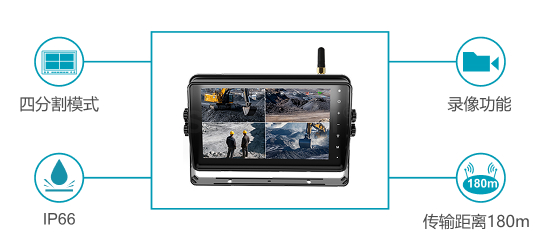敏視7寸高清帶錄像防水無線車載視頻監(jiān)控顯示器具有IP66防水外殼,配備錄像和觸屏功能;空曠傳輸距離最遠(yuǎn)達(dá)180m,信號穩(wěn)定抗干擾,支持多畫面顯示模式,適用于卡車,叉車,礦車等各種車輛。