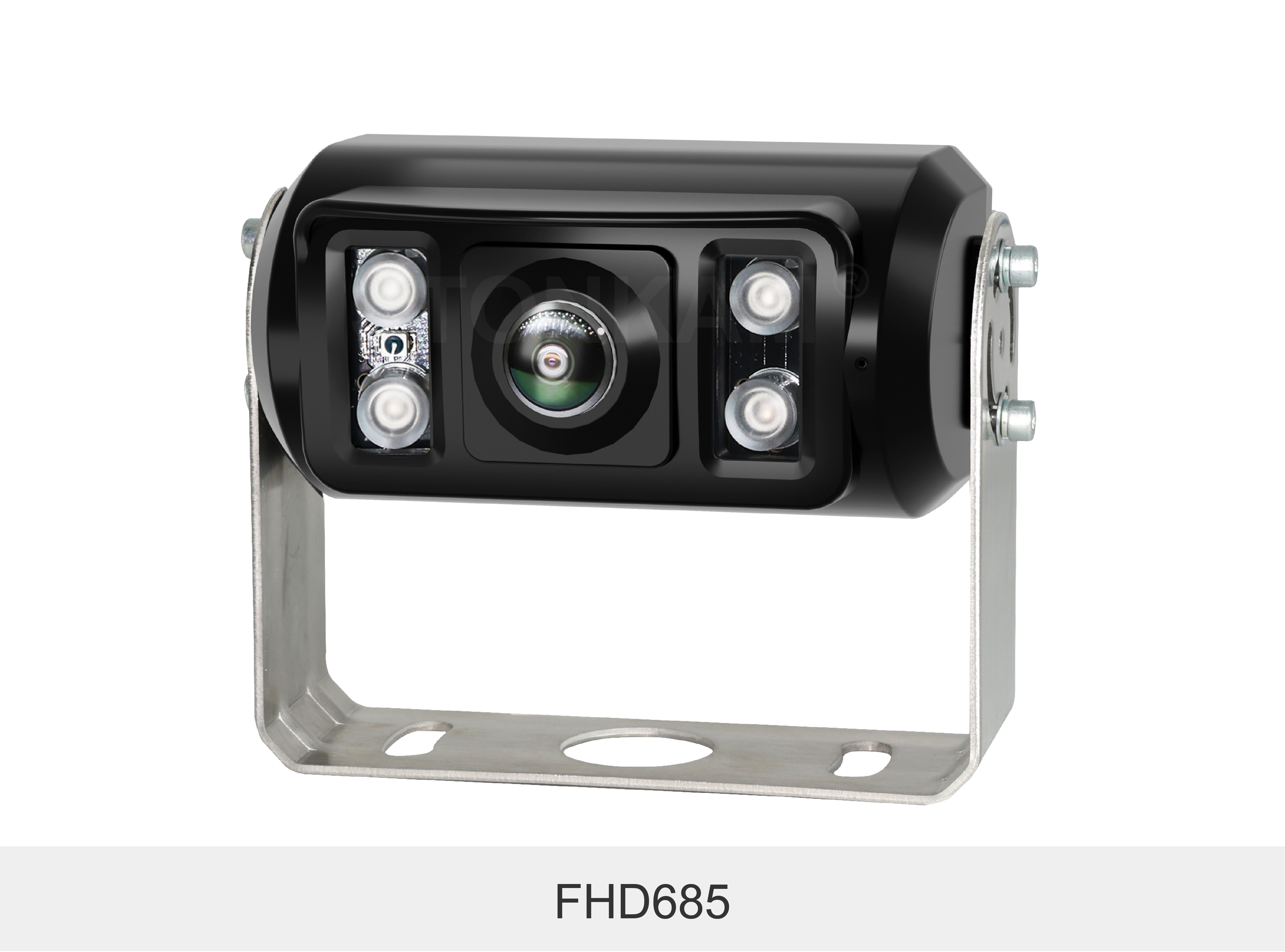 高清魚眼矯正倒車攝像頭1080P。防水等級(jí)IP69K。170°鏡頭畸變校正。供電電壓:12V。夜視距離為8m~10m。防震等級(jí):ISO 16750-3 ( 最大17.3G)。工作溫度-20°~70° 。原鏡像可切換等等。