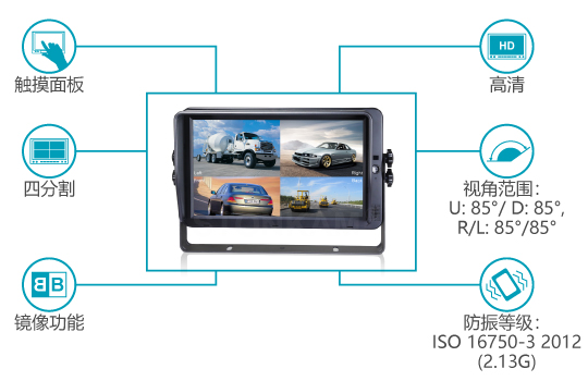 STONKAM 10.1寸高清四分割顯示器(型號(hào):HD-291D),支持四路高清/標(biāo)清攝像頭,最高支持1080P;支持VGA(可選)、DVD三路輸入;帶觸摸屏控制功能;支持60級(jí)LCD手動(dòng)背光調(diào)節(jié),以及60級(jí)自動(dòng)調(diào)節(jié);分辨率為1024*600;安裝和使用方便,功能新穎,可應(yīng)用于車載、船載監(jiān)控,又可應(yīng)用于室內(nèi)外的安防監(jiān)控。