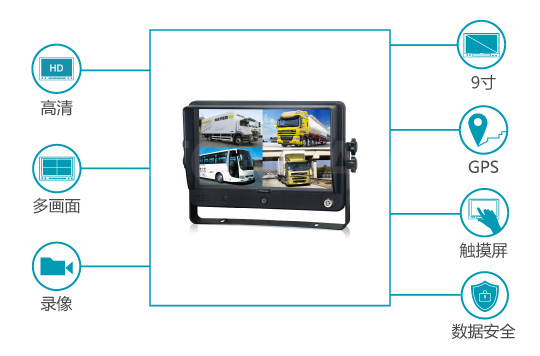 敏視9寸高清觸摸屏四分割車載錄像顯示器,是行業(yè)車載顯示器的重大升級-車載DVR和顯示器二合一!支持4路高清攝像頭輸入,多路同屏分割實(shí)時360°無死角監(jiān)控,駕駛員在行車過程中能直觀監(jiān)控車輛周圍行車狀況,減少盲區(qū)碰撞、剮蹭等意外發(fā)生的可能性!同時這款高清車載顯示器可高清實(shí)時錄像,支持GPS接入,極大方便車隊(duì)高效管理。