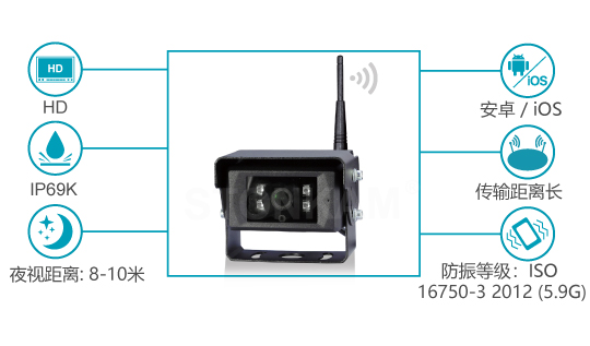 敏視高清無線wifi車載倒車后視攝像機(jī)支持Android和iOS系統(tǒng),通過WiFi連接即可輕松觀看車輛的實(shí)時(shí)視頻??梢酝ㄟ^外接磁性底座輕松完成安裝,便于安裝和使用。支持夜視功能,同時(shí)防水防振,適用于卡車,拖車,起重機(jī)等各種商用車輛。