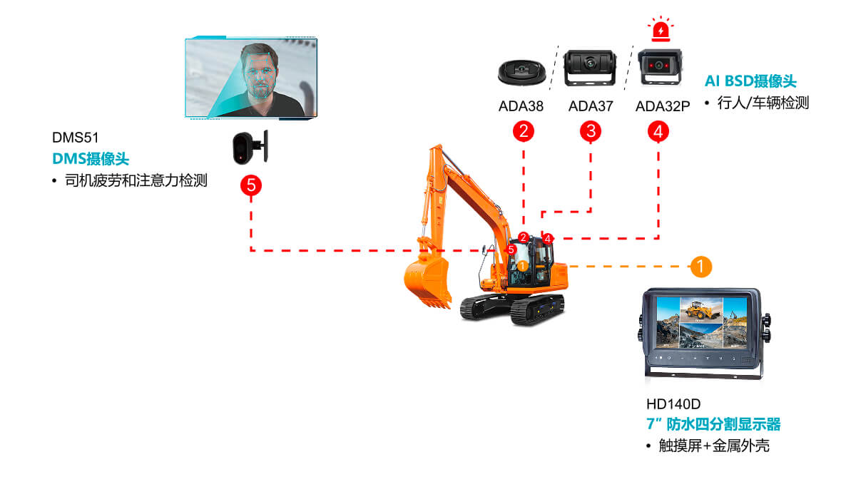 挖掘機(jī)/裝載機(jī)AI BSD&DMS監(jiān)控系統(tǒng)